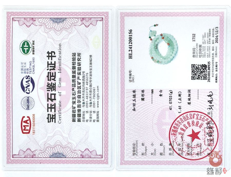中国新疆和田玉网出售的商品均出具以下资质的国家权威质检部门质检证书: