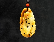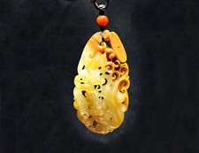 和田玉挂件和田玉黄沁籽料龙凤鸡心佩挂件吊坠富贵吉祥