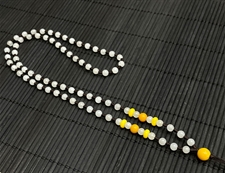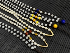 佛珠,一般人也叫念珠,它的用途是佛教徒念佛时用来记数和束心的用具,同时也是佛教信徒们修行时必备的一种信物。 现在市面上的佛珠主要由玉石、玛瑙、沉香、红木等珍贵材料做成,佩戴手链、项链,一方面可以起到修身养性的作用,另一方面也是一种极佳的装饰品。一般来说,佛珠要佩戴正确的颗数,这样才能起到它应有的作用。大家要根据自己的手腕粗细来确定大小,切忌不要随意更改颗数 佛珠的颗数根据其不同的含义有9种,分别是14颗、18颗、21颗、27颗、36颗、42颗、54颗、108颗、1080颗。