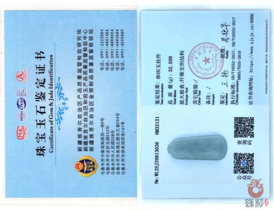 中国新疆和田玉网出售的商品均出具以下资质的国家权威质检部门质检证书: