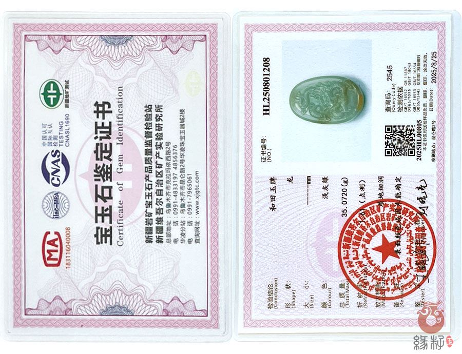 (附:新疆岩矿宝玉石产品质量监督检验站国家和田玉产品质量监督检验中心样例)
