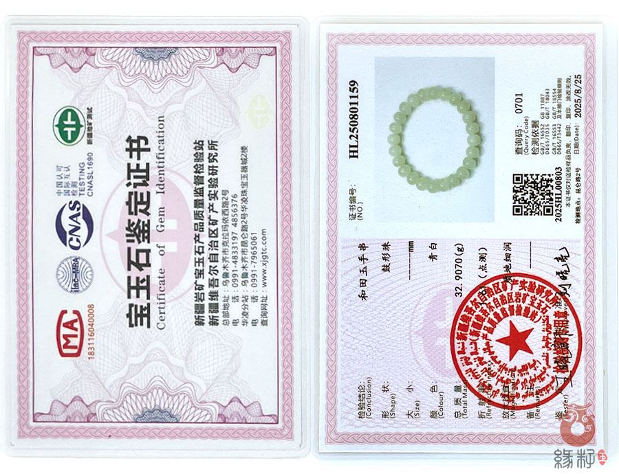 中国新疆和田玉网出售的商品均出具以下资质的国家权威质检部门质检证书: