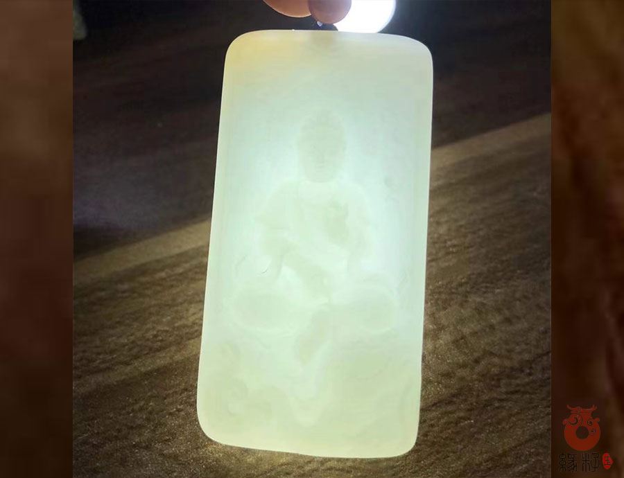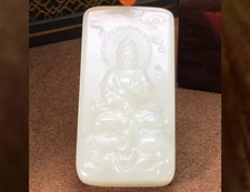 作品简述:缘籽和田玉观音挂件吊坠,天然优质和田玉白玉籽料,苏工大师设计雕刻,质地油润,光泽细腻,雕工精细,寓意健康平安,国检证书,七天无理由退货。
