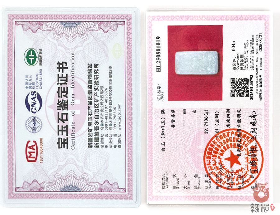 (附:新疆岩矿宝玉石产品质量监督检验站国家和田玉产品质量监督检验中心样例)