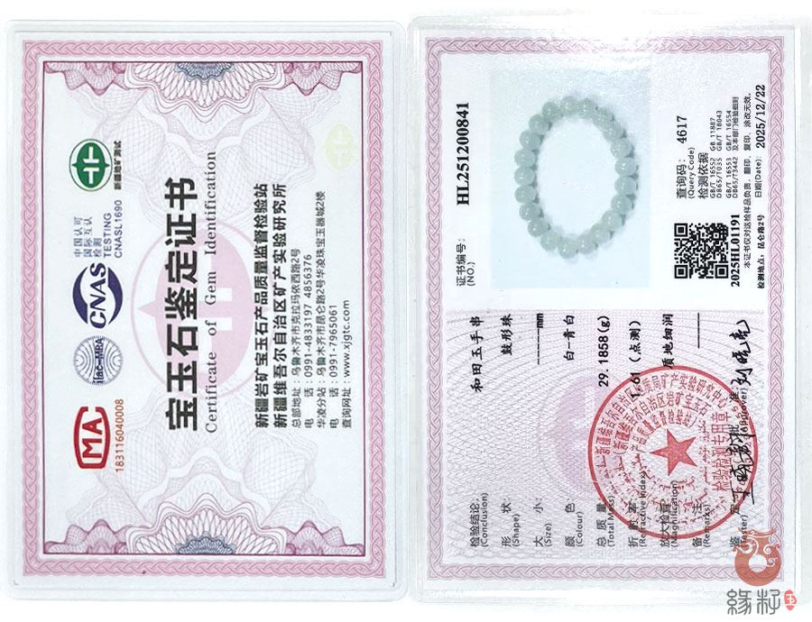 中国新疆和田玉网出售的商品均出具以下资质的国家权威质检部门质检证书: