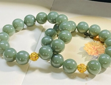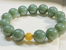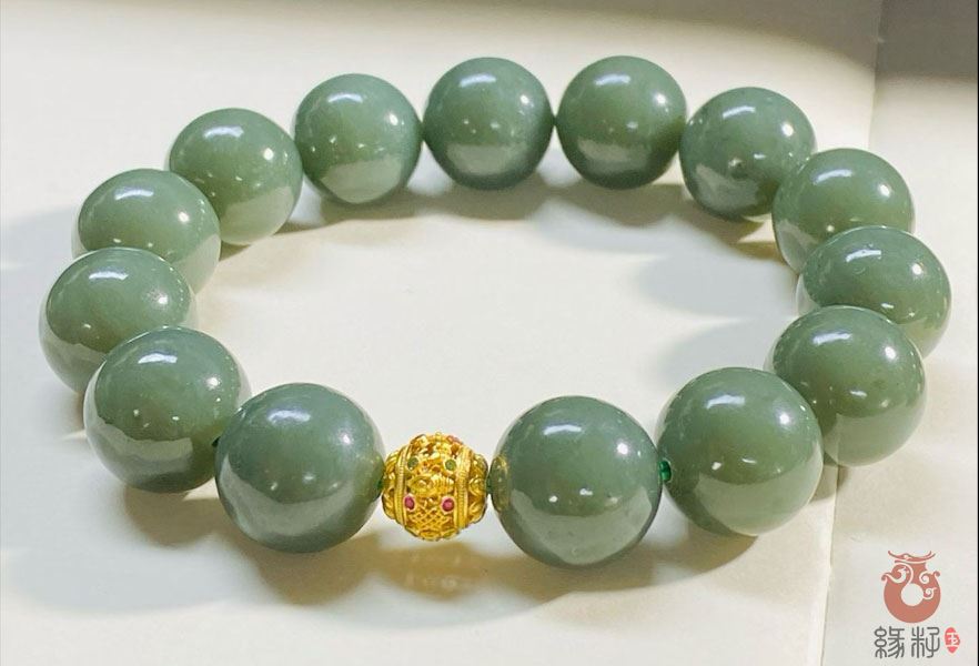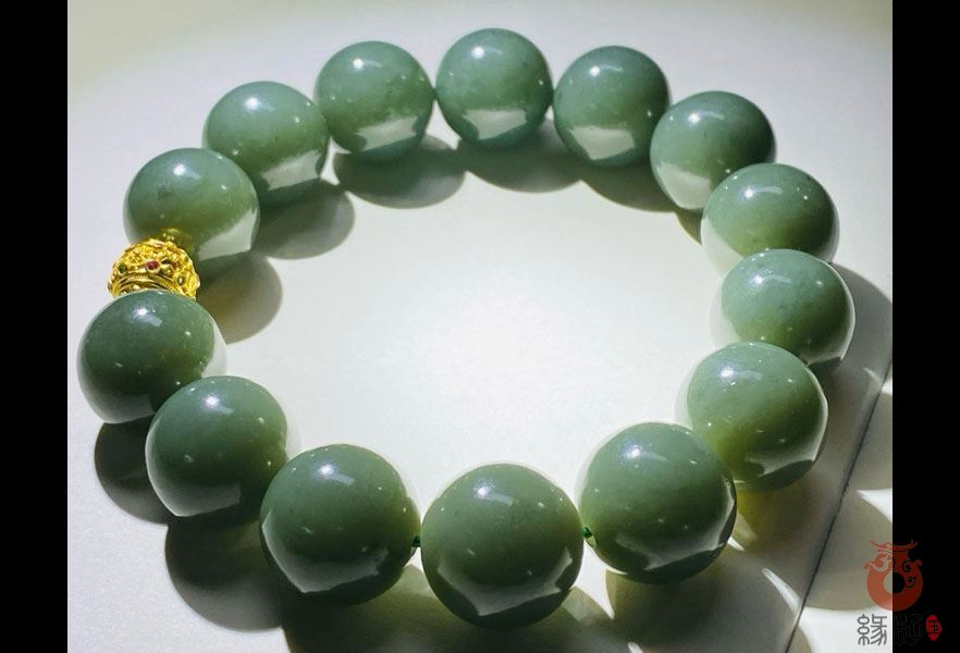 和田玉15mm圆珠手串手链青玉手串手链幸福美满