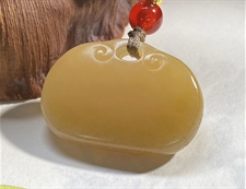 作品简述:缘籽和田玉如意宝宝锁挂件吊坠,天然优质和田玉糖玉,苏工大师设计雕刻,质地油润,光泽细腻,雕工精细,寓意招财纳福,国检证书,七天无理由退货。