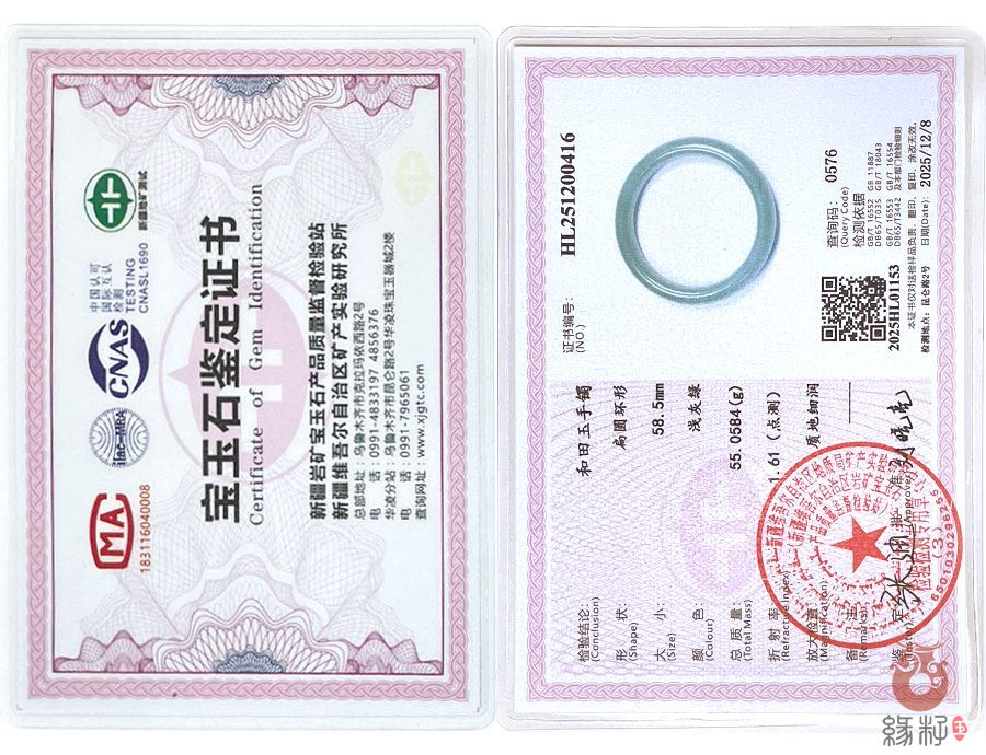 (附:新疆岩矿宝玉石产品质量监督检验站;国家和田玉产品质量监督检验中心样例)