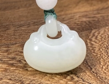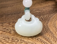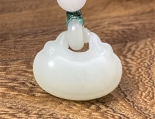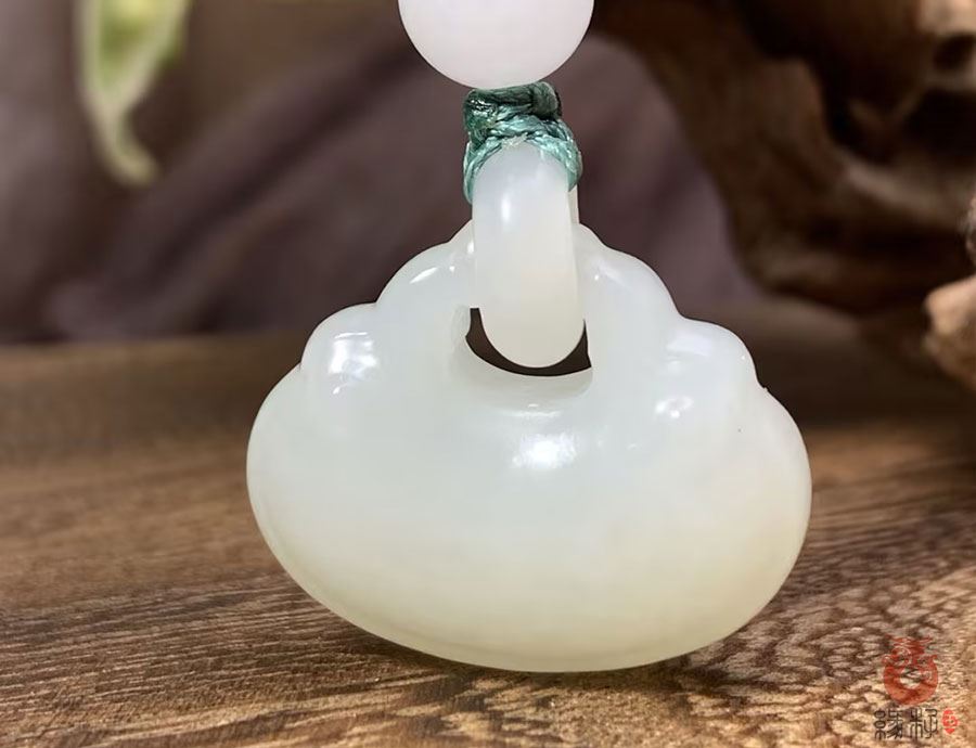 作品简述:缘籽和田玉平安锁挂件吊坠,天然优质和田玉羊脂白玉,苏工大师设计雕刻,质地油润,光泽细腻,雕工精细,寓意辟邪平安,国检证书,七天无理由退货。