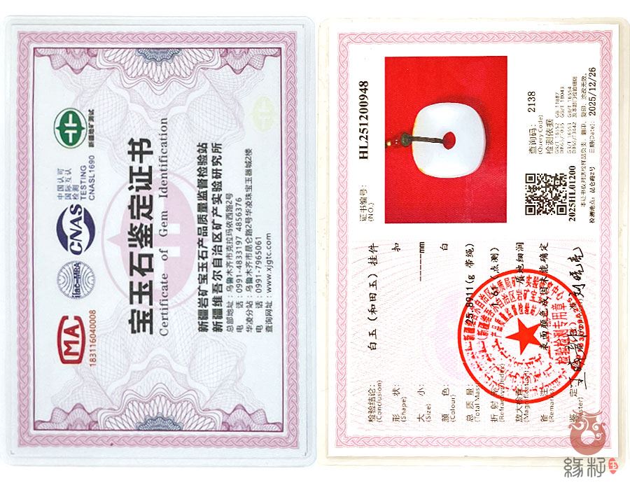 (附:新疆岩矿宝玉石产品质量监督检验站国家和田玉产品质量监督检验中心样例)
