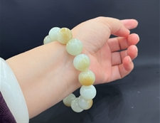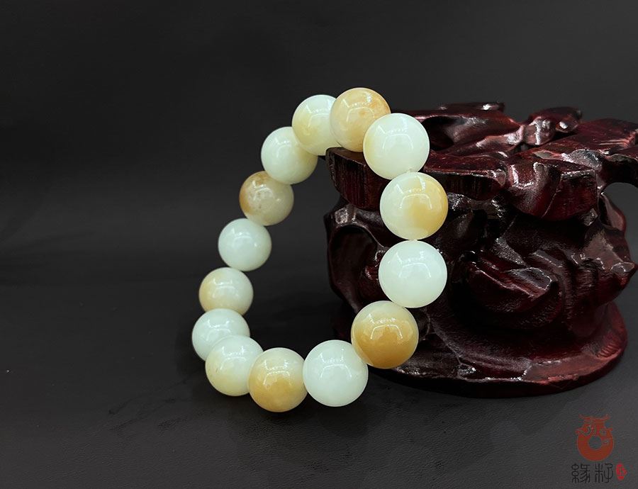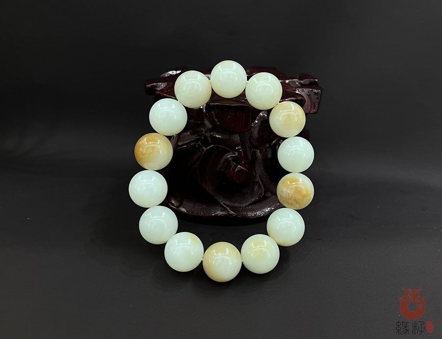 作品简述:和田玉手串选用纯天然上等和田玉白玉原料,颗颗精选,晶莹圆润饱满,和田玉白玉16mm圆珠手串质地纯净,油润光泽细腻