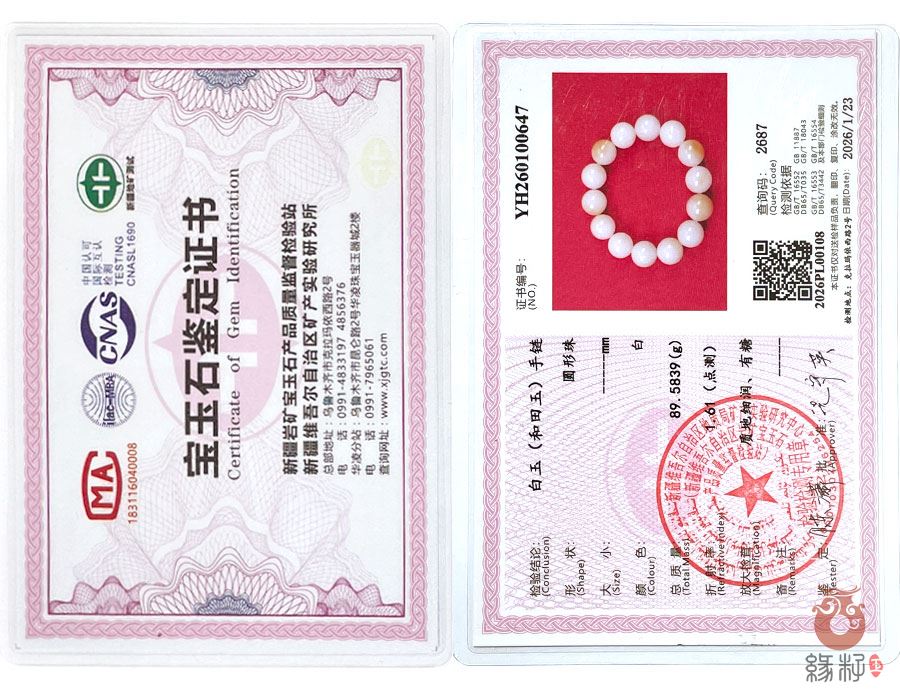 (附:新疆岩矿宝玉石产品质量监督检验站国家和田玉产品质量监督检验中心样例)