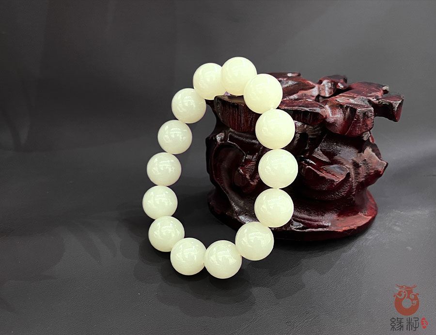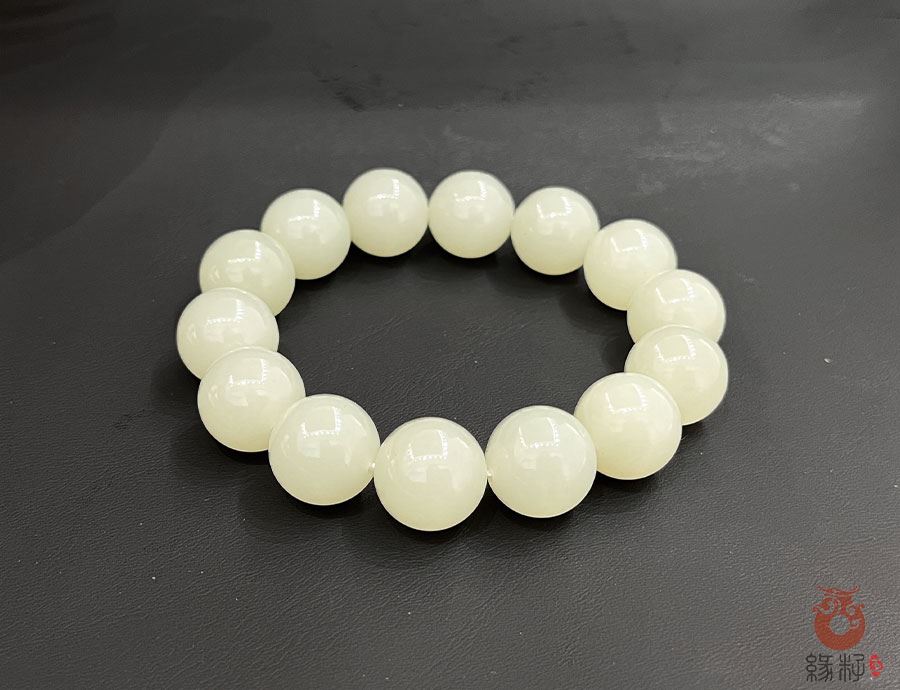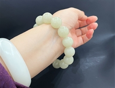 作品简述:和田玉手串选用纯天然上等和田玉原料,颗颗精选,晶莹圆润饱满,和田玉16mm圆珠手串质地纯净,油润光泽细腻