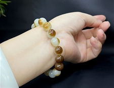 14粒,表示观音菩萨与十方、三世、六道等一切众生同一悲仰,令诸众生获得14种无畏的功德,14颗是一般的佛珠手串的常用颗数,持观音名号,使众生所得福德与恒河沙数无异。代表著观音菩萨与十方、三世、六道等一切众生同一悲仰,令诸众生获得十四种无畏的功德,这母亲交给我求神保佑我的佛珠手链,直到了那天,才重又变得完整。恨之人不生嗔恚,是为无畏。