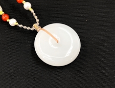 作品简述:缘籽和田玉平安扣挂件吊坠,天然优质和田玉羊脂玉,苏工大师设计雕刻,质地油润,光泽细腻,雕工精细,寓意平平安安,国检证书,七天无理由退货。