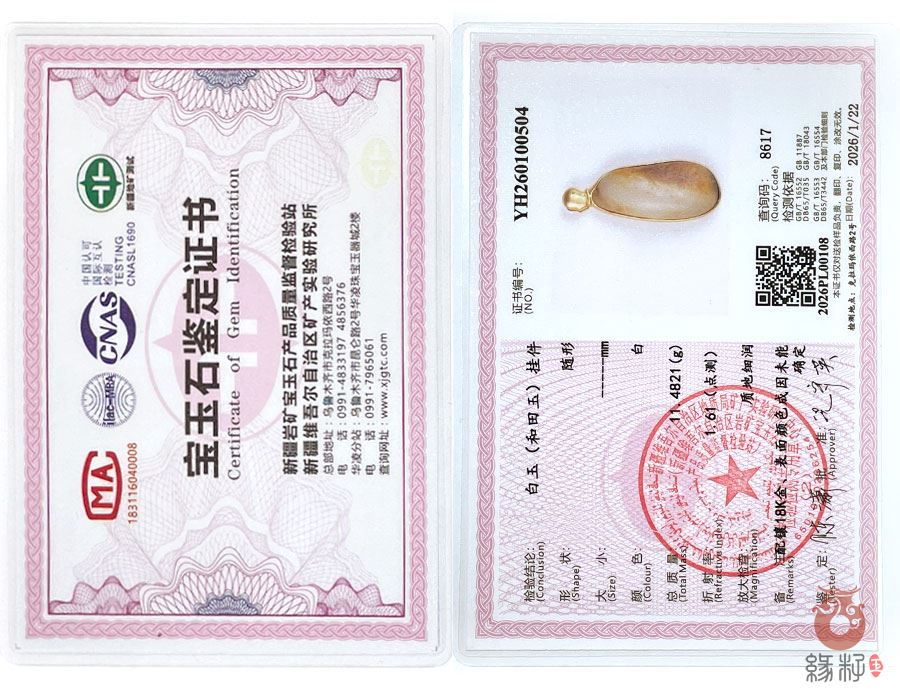 (附:新疆岩矿宝玉石产品质量监督检验站;国家和田玉产品质量监督检验中心样例)
