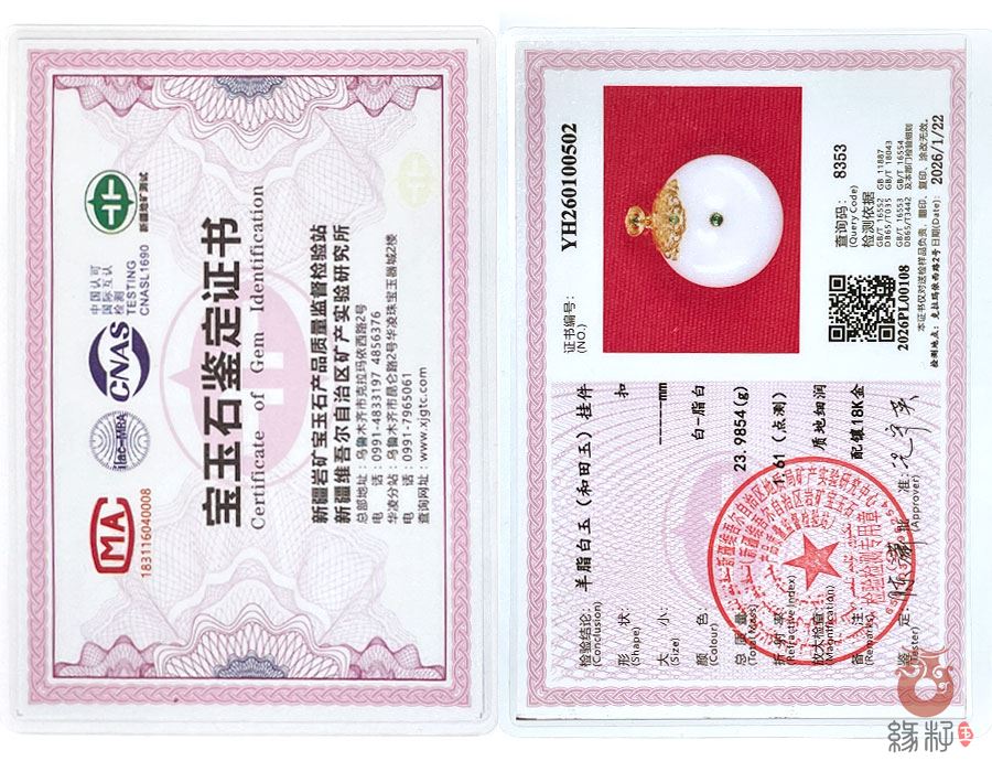 (附:新疆岩矿宝玉石产品质量监督检验站;国家和田玉产品质量监督检验中心样例)