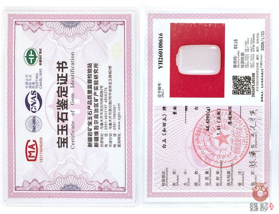 中国新疆和田玉网出售的商品均出具以下资质的国家权威质检部门质检证书: