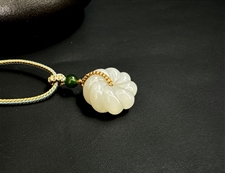 作品简述:缘籽和田玉宝相花玉扣,天然优质和田玉白玉,苏工大师设计雕刻,质地油润,光泽细腻,雕工精细,寓意护佑平安,国检证书,七天无理由退货。