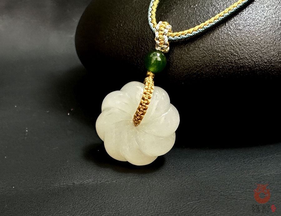 作品简述:缘籽和田玉宝相花玉扣,天然优质和田玉白玉,苏工大师设计雕刻,质地油润,光泽细腻,雕工精细,寓意护佑平安,国检证书,七天无理由退货。