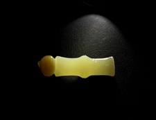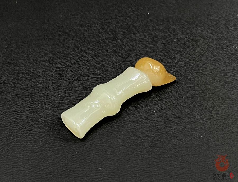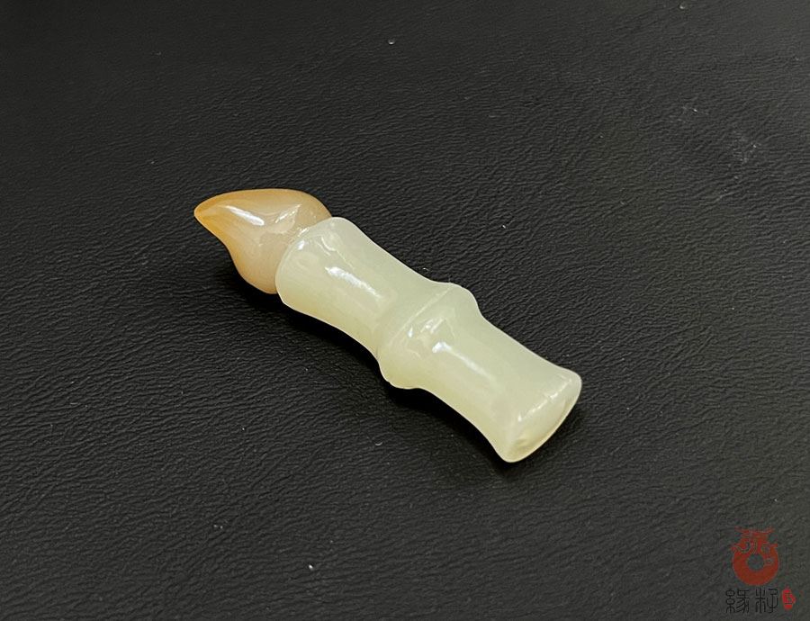 作品简述:缘籽和田玉竹节毛笔挂件,天然优质和田玉糖白玉,苏工大师设计雕刻,质地油润,光泽细腻,雕工精细,寓意金榜题名,国检证书,七天无理由退货。