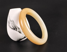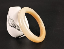 作品特色: 流行扁条设计,时尚潮流新款,宽窄适中,贴身舒适,高雅大方,油润光泽,靓丽美观;糖白交互自然沁润,天然优质糖白玉精品;专业高光打磨抛光技术不漏细节,浑厚润洁,油润光亮,形,材,工集作品于一体;精美包装礼盒及手提袋。