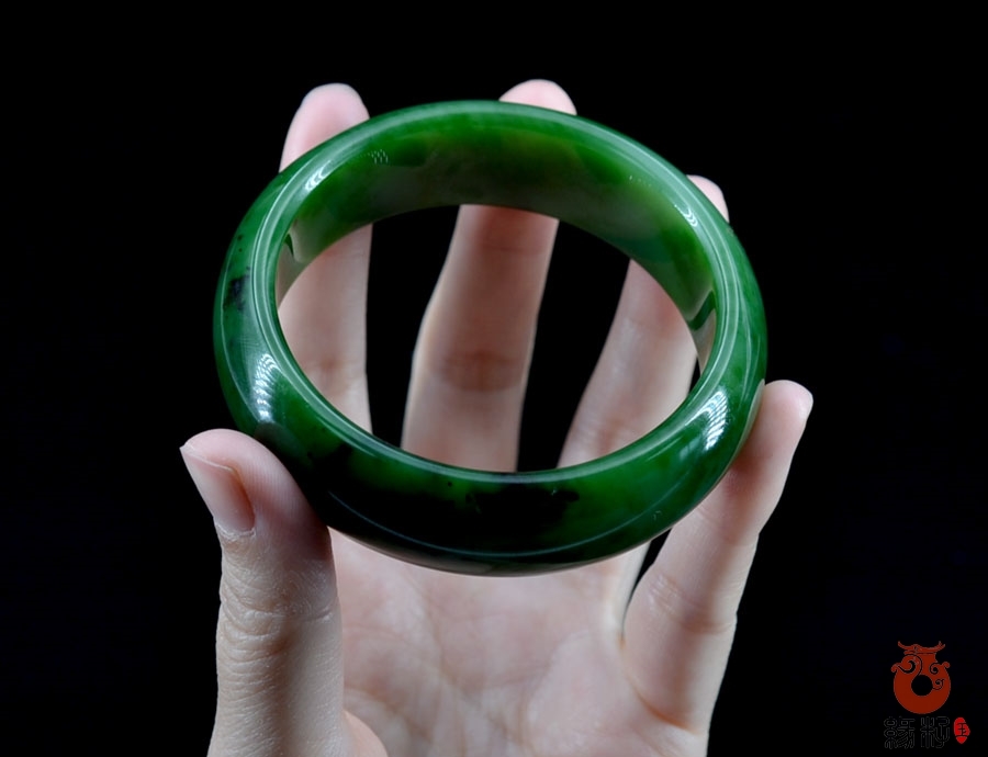 作品简述:缘籽和田玉碧玉扁条时尚款手镯,纯天然上等和田玉,苏工大师制作,缘籽玉碧玉手镯质地油润光泽细腻,设计完美做工精细,国检证书