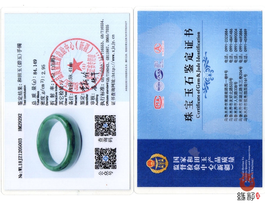 中国新疆和田玉网出售的商品均出具以下资质的国家权威质检部门质检证书:
