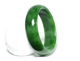 作品特色: 流行扁条设计,时尚潮流新款,宽窄适中,贴身舒适,高雅大方,油润光泽,靓丽美观/华贵加宽扁条设计,稀有独特造型,时尚雍容华贵,庄重高雅大气,油润光泽,靓丽美观;出自老坑,色泽碧绿洁净,高雅靓丽,稀有菠菜绿碧玉臻品;精美包装礼盒及手提袋。