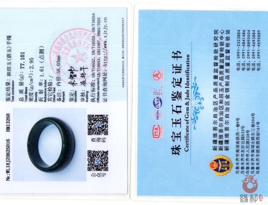 中国新疆和田玉网出售的商品均出具以下资质的国家权威质检部门质检证书: