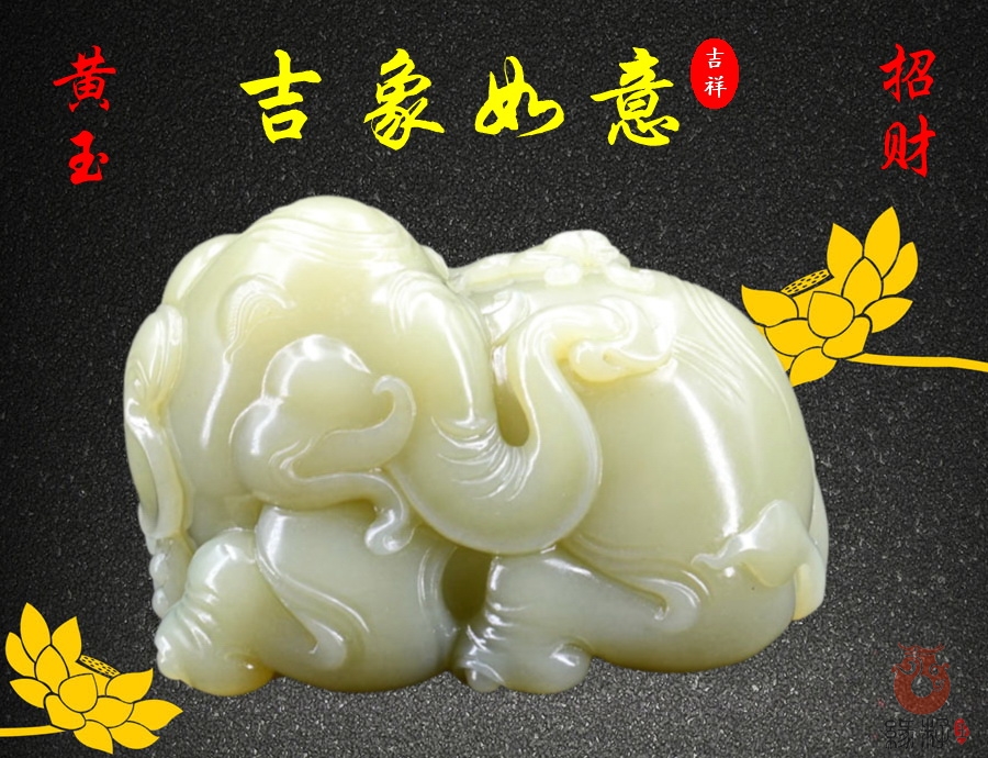 和田玉大象摆件黄玉摆件吉象送财健康长寿