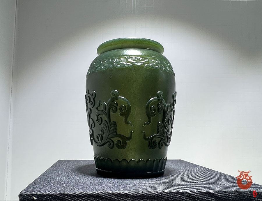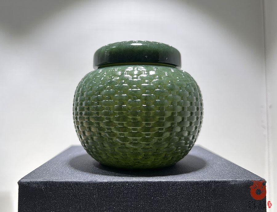 纯天然和田玉青玉器皿罐