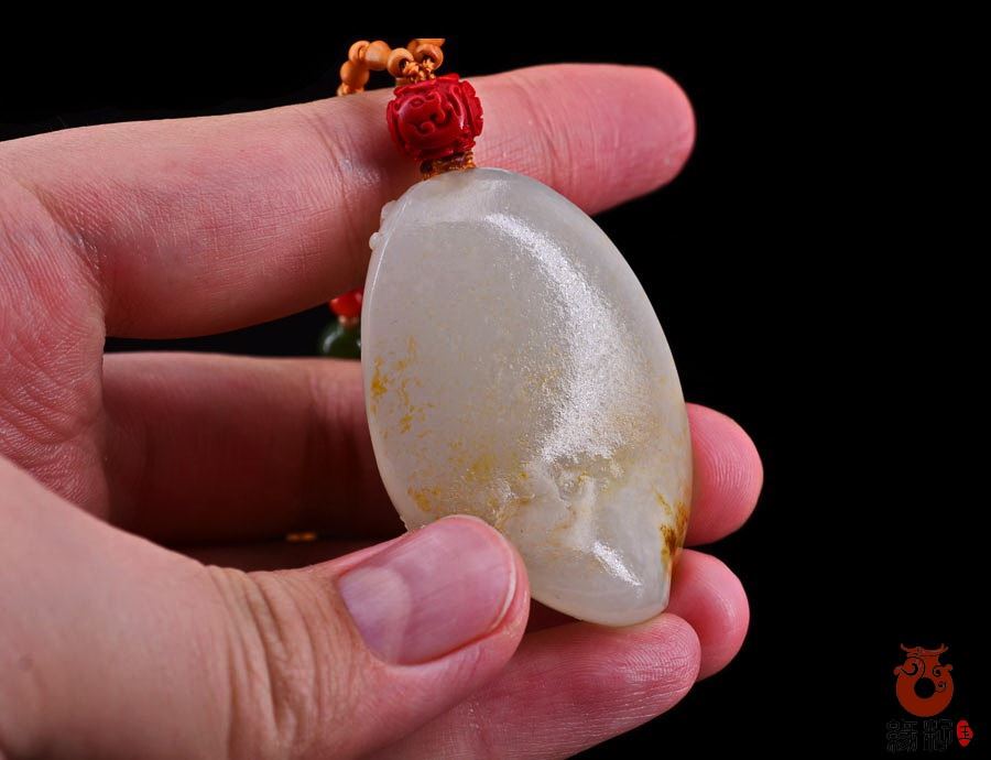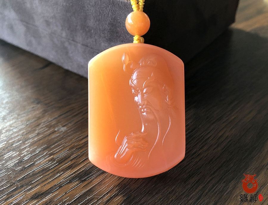 第四、关公也代表佩戴者的地位与权威,寓意着佩戴者事业上有成就、生活中步步高升、单位里手握重权。这件和田羊脂白玉籽料关公挂件目前排在第四位。摆放在盈科广场缘籽玉器总店侧2柜下柜,标价102600元,重:33.994g,长46mm宽31mm厚18mm,采用的是和田羊脂玉籽料雕刻,保留天然黄沁皮色,自然洒金层次分明,玉质油润细腻,细糯老熟,质感浑厚,结构均匀致密洁净,知名玉雕师作品、传统经典设计,神态亲善祥和,动静神似,圆满,端庄喜庆、专业柔光技工精心细致多遍打磨,柔光层次分明,意,形,材,工集作品于一体。
