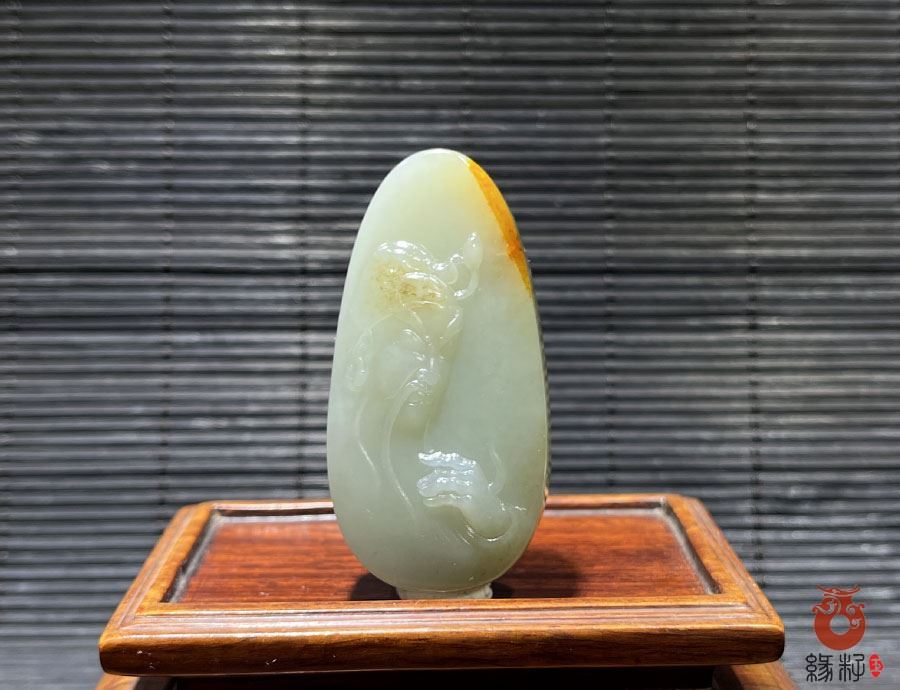 第七、青白玉的关公颜色沉稳、质感厚重,能突出关公的威严与刚毅,且性价比高。这件和田青白玉籽料关公挂件排在第七位,摆放于盈科广场缘籽玉器总店侧2柜下柜,标价8000元,重:51.3493g,长61.3mm宽30.9mm厚13.9mm,关公手捻胡须是古典文学中常见的动作,多表现人物在思考决策时的沉静状态。历史上记载关公熟读《春秋》,兼具文武之才。这一姿态暗示关公的智谋与从容,深思熟虑又审时度势,寓意佩戴者临危不乱,运筹帷幄。采用和田天然青白玉籽料原石,苏州大师设计雕刻,巧雕保留洒金皮色,圆润饱满。玉质油润细腻,细糯老熟,质感浑厚,结构均匀致密洁净。